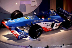| Передняя | Верхняя и нижняя дужка из углеволокна управляемые титановой качалкой через нажимной стержень. Блок рессор и амортизаторов установлен через прорезь на верху монокока. Титановые оси спроектированы Benetton. |